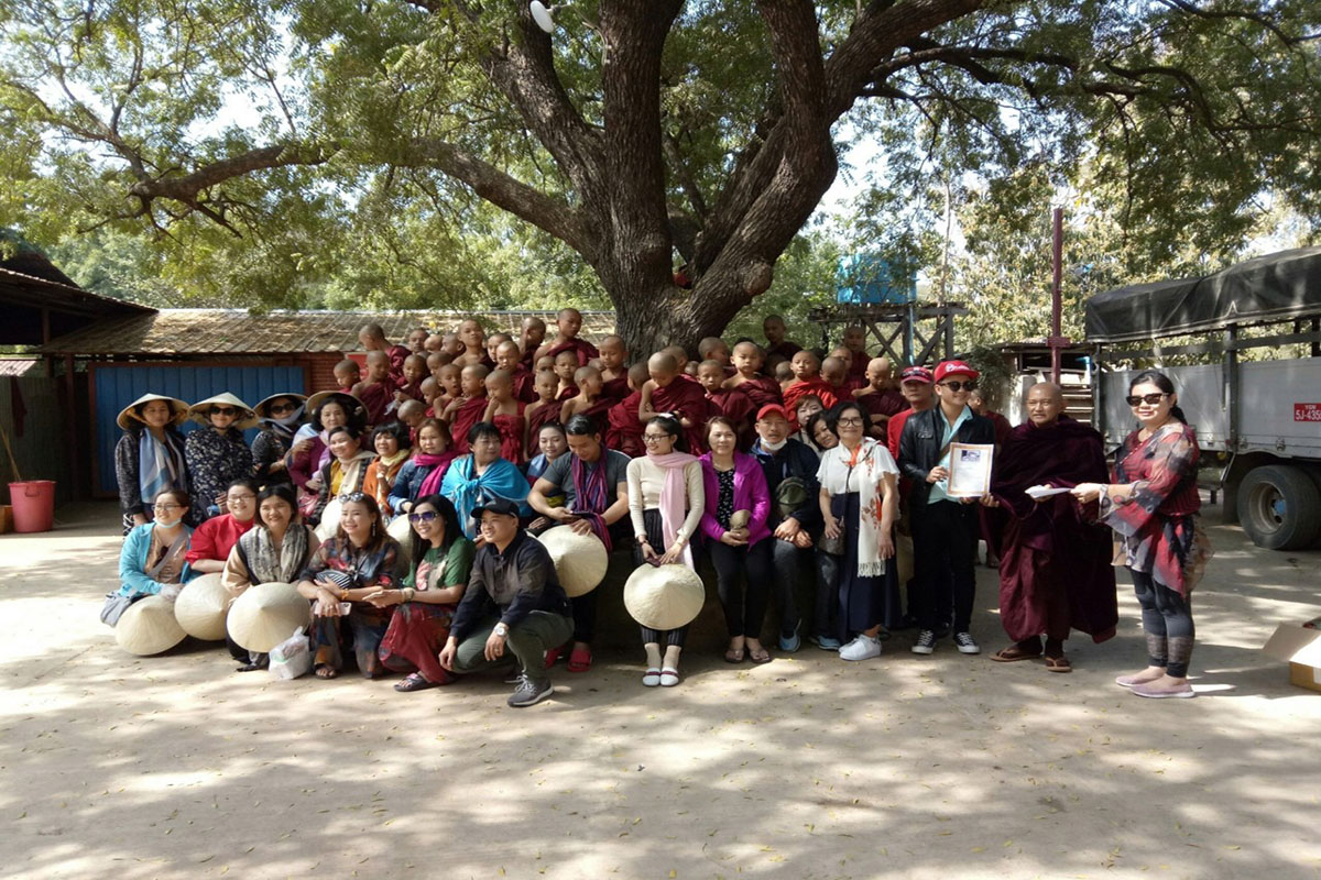 Đoàn phát tâm tổ chức sớt bát cho 1000 chư tăng đang tu học tại các tu viện Bagan. Sau đó đoàn check out khách sạn và khởi hành ra sân bay về lại Yangon. Đến Yangon, đoàn tiếp tục đi về Golden Rock. Đến nơi, sau khi check in, đoàn chuẩn bị y phục chỉnh tề lên đỉnh hòn đá thiêng. Làm lễ dát vàng lên hòn đá thiêng. Thỉnh thầy giảng về công đức dát vàng và sự nhiệm mầu xá lợi tóc của đức phật.