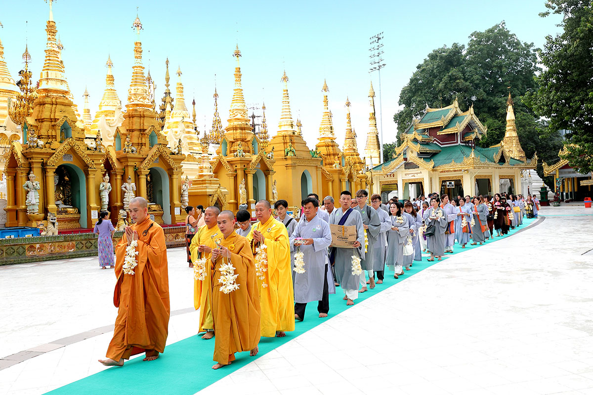 Đoàn thắp nên hoa cúng dường, kinh hành quanh bảo tháp và thiền hành. Buổi tối đoàn dùng cơm tại nhà hàng địa phương và về lại khách sạn nghỉ ngơi, chuẩn bị cho việc cúng dường sớt bát trong Rừng Thiền Pa-auk vào sáng sớm hôm sau. Đoàn sẽ nghỉ đêm ở Mawlamyine.