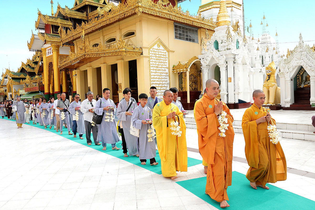 Đoàn thắp nên hoa cúng dường, kinh hành quanh bảo tháp và thiền hành. Buổi tối đoàn dùng cơm tại nhà hàng địa phương và về lại khách sạn nghỉ ngơi, chuẩn bị cho việc cúng dường sớt bát trong Rừng Thiền Pa-auk vào sáng sớm hôm sau. Đoàn sẽ nghỉ đêm ở Mawlamyine.